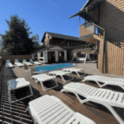 На території прісний басейн з підігрівом та чан джакузі з гарячою солоною водою.